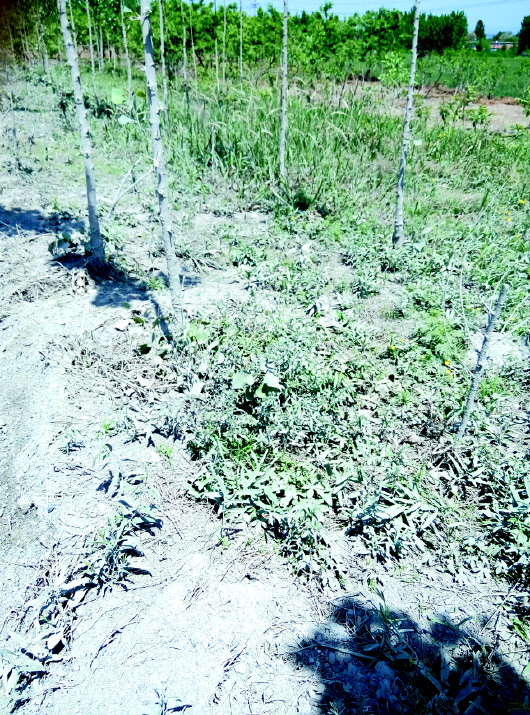 地里的庄稼和植被上覆盖了厚厚一层粉尘。