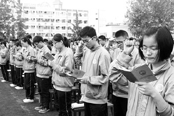 5月4日,育才中学重举行了2013级学生18岁成人仪式。仪式中,学校向迈入成人行列的同学颁发《中华人民共和国宪法》,以此激励同学们成为有理想、有道德、有文化、有纪律的社会主义公民。
