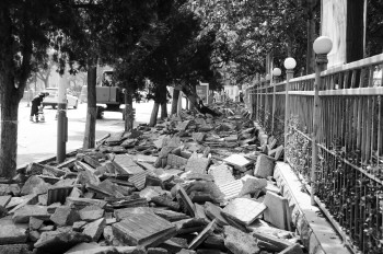 5月5日,东方红路和东风路上的人行道路面被机械打碎挖开,市政部门将对路基加固,重新铺设路面。