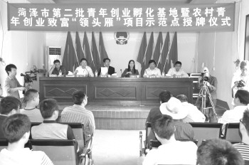 本报菏泽5月5日讯(记者 李德领) 近日,共青团菏泽市委在曹县大集镇召开第二批农村青年创业致富“领头雁”项目示范点授牌仪式,选取曹县大集镇鲁星演出服装有限公司、安蔡楼镇小木匠影楼家具有限公司等30家农村青年电商企业作为第二批农村青年创业致富“领头雁”项目示范点,并联合市县人行、曹县信用社分别给予30家示范点10万至50万不等的授信额度,帮助他们做大做强,示范带动更多的农村青年通过电子商务创业致富。