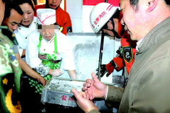 救援官兵到达现场后发现,一名女子左手不慎被压面机的两个滚轴紧紧卡住,无法动弹。由于该女子全手掌被卡得很紧,稍有触动便疼得大叫,如果处理不当,很可能使其受到二次伤害。救援官兵在仔细研究了该压面机的类型、结构后,由两名消防战士相互配合,利用断电钳、撬杠等工具进行援救,近5分钟后,成功帮助该女子脱困,并立即将其交给现场医护人员进行处理。