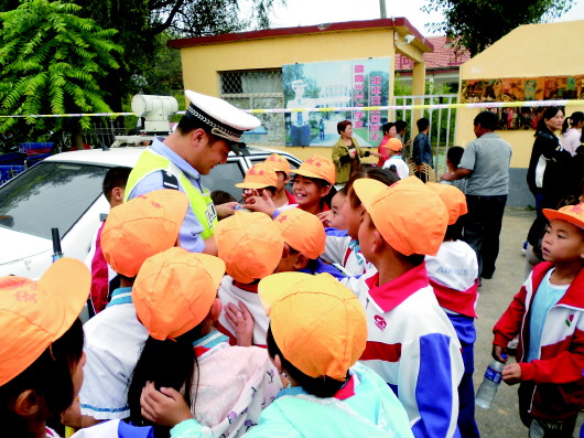 为加强校园交通安全防范和管理,切实提高学生的交通安全意识和法制意识,确保广大师生出行安全,在“五·一”到来之际,沾化交警深入辖区各个学校开展了“小手拉大手、共创平安路”法制宣传教育活动。民警着重讲解了红绿灯、斑马线及过马路时的注意事项等知识,并通过与学生们模拟道路交通现场,加强了学生们对道路交通的了解,加深了学生们对于交通安全的认识。