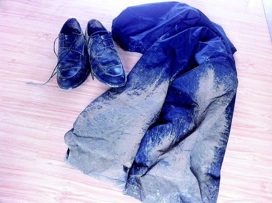 搜救人员的鞋和裤子沾满了泥巴。 本报见习记者 王建伟 摄
