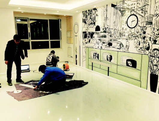 冯统嗅到了涂鸦作品方寸间的浓厚商机,就联合几位同学,开始承接创意墙体彩绘的订单。