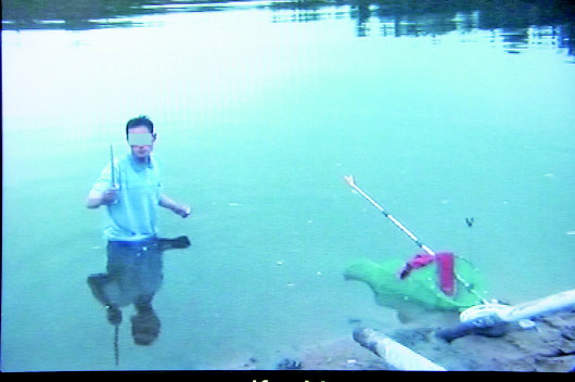 接到县公安局110指令后,马头派出所民警及时与受害人刘先生取得联系,按照刘先生叙述的路线第一时间与他会合。警民会合后,一路猛追,很快发现了嫌疑人的身影,警民一起在嫌疑人身后追击。追出一段距离后,嫌疑人走投无路,跳入河中,手持尖刀与岸上的民警对峙。
