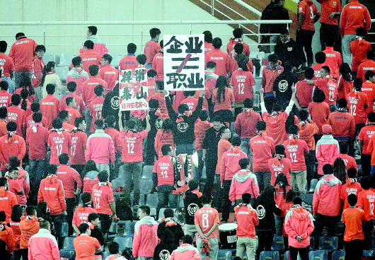 2009赛季,当鲁能在亚冠赛场惨遭印尼斯里维加亚队4:2逆转后,他们在回国的第一个主场就遇到了类似的情况。当时现场2000多名球迷集体背对着他们,而且手里还举着“耻辱”和“道歉”这样的纸牌。这一次,鲁能球迷用同样的方式表达了自己的不满。