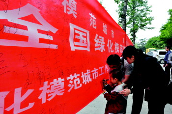 “大家都爱绿色,我们家里的阳台、客厅、卧室都种着绿色植物,每次看到绿莹莹的一片,心情总是很好。”王女士说,这种活动老百姓都应该参与进来,从植一株树、栽一盆花开始。当天,参与签名活动的市民络绎不绝,从早上8点持续到11点多,十几米长的大横幅布满了密密麻麻的签名,签名者有耄耋之年的老人,也有五六岁的孩子。