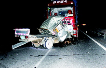 5月1日晚10点多,李师傅驾货车到达潍胶路北孟镇路段时发现前方有一辆车正在行驶。当两车越行越近时,李师傅才发现一辆小货车竟然在逆向行驶,正在冲向他的大货车。他连忙变换远近光车灯让对方注意,但对方没有任何反应。尽管李师傅狠踩刹车,猛打方向盘,但两车迎面相撞。小货车被顶出去十几米,严重变形。李师傅忙下车拨打了120急救电话。接到报警后,民警很快赶到了现场,车内驾驶员被救出后,经120急救人员抢救无效死亡。