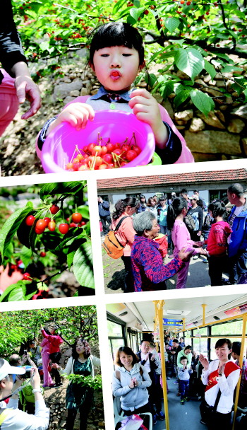 本报联合公交隧道分公司开通“爱心采摘樱桃专线车”,首批40名市民献爱心