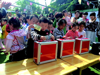 大孙家村幼儿园的小朋友们纷纷献出自己的爱心。
