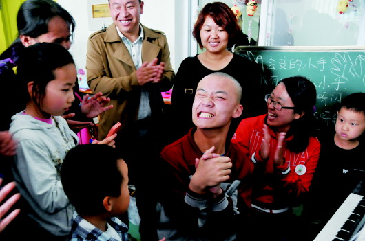 高兴妈妈们的到来,孩子们也展示出了自己的才艺。一曲舞蹈《小苹果》让妈妈们心里乐开了花,轮椅上的“男声”,超超的独唱更让爱心妈妈们感受到了一颗乐观、坚强的心。特教老师将超超推上了“舞台”,妈妈们在台下成为他最忠实的观众。