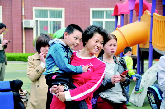 当孩子们来到教室外做活动时,为了让坐在轮椅上的超超能更清楚地看到大家的互动,张洪霞把几十斤重的超超抱了起来。“在我抱着他的时候,也紧紧地抱着我,并一直重复一句话:‘我终于能看到了’。”张洪霞告诉记者,她能感觉到超超的幸福,眼泪差点流出。当老师把漂亮的眼镜给孩子们戴时,超超不忘给“妈妈”也戴上。