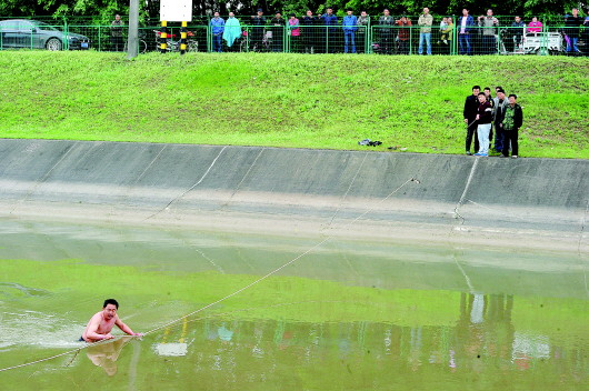 老两口开车送孙子上学掉进河里爷爷托举孙子近百米后双双溺亡事发河道呈梯形,河堤湿滑常出事