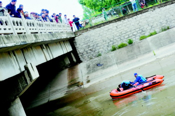 接到报警后,民警与消防官兵赶到现场,指挥打捞工作。但是由于当时正值下雨,且缺少专业打捞设备,经过与该河道管理部门协调后,决定先降低该河段水位,等待专业救援队的到来。