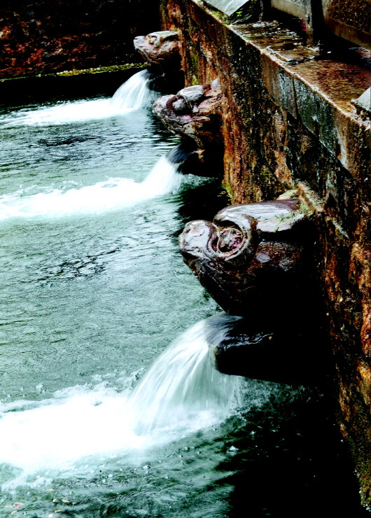 玛瑙泉的西侧就是黑虎泉。黑虎泉由于地势较高,为济南最易停喷的名泉。今年4月初,黑虎泉的水位一度跌破27.50米。西侧的兽头几乎不再喷水,随时都有停喷的可能。11日雨后的黑虎泉水声喧喧,三个石雕兽头泉水汹涌而出,已经没有了停喷的迹象。