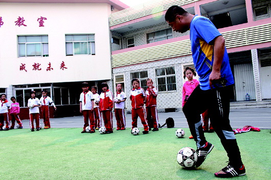 足球队每周二和周五下午训练。训练完毕,队员们可以把球带回家继续练习。“足球从娃娃抓起,从二年级开始组建,用五年的时间打下良好的基础。”吴兴义说。