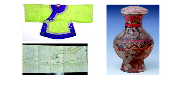 汉彩绘敞口平沿束颈铺首衔环高圈足灰陶壶。