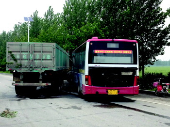 而货车司机杨某介绍,他当时本来想正常超车,但因为雨天路滑,车子突然失控,才挤撞上了同向行驶的公交车。“车身太长,路太滑就没控制住。”杨某说,虽然自己立即踩了刹车,但还是一直到冲进绿化带里才停下。