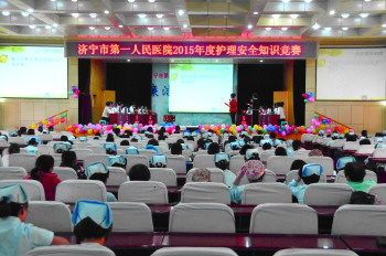 ▲5月6日,济宁市第一人民医院举办护理安全知识竞赛,围绕“患者安全目标”,提高护士安全意识,保障患者安全,从而构建和谐的护患关系。本报记者 张晓科 摄