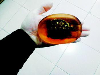 王女士以前从来没有见过这种东西,看着像琥珀,感觉很稀奇。正在这时,一位50岁左右的男子走到两人面前,称其是“保险员”,他所在的保险公司最近发了一个内部文件,国家博物馆失火,丢失了8对“国宝琥珀龟”。