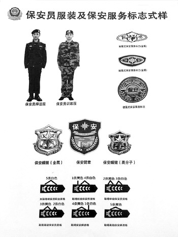 ◥保安员服装及保安服务标准式样。