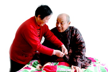 李德玉没有自主排便意识,给丈夫导尿和排便是商文凤常做的工作。除了给丈夫做易消化的饭菜外,估摸着丈夫该大便时,她就戴上手术手套,将开塞露推入丈夫体内,用手指一点一点从直肠往外掏大便。随着年龄的增长,心脏病、胆结石、膀胱炎等各种并发症折磨着李德玉,一天三顿不能停药,为了护理丈夫,大字不识一个的商文凤却学会了导尿、按摩、康复训练等多种护理方法。