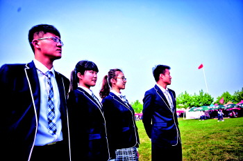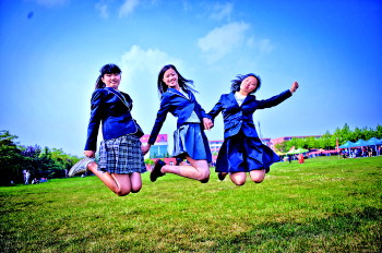 5月7日,曲阜师范大学日照校区举行春季运动会。开幕式上,该校传媒学院的亮相很吸引眼球,因为他们统一穿的院服很“讲究”,同样是西服套装,女生的白衬衣领口处是一个领结,下身是格子短裙,而男生的衬衣外是一条领带,下身则是配套的西服裤子,“穿上这一身走在路上,回头率特别高。”一名学生自豪地说。
