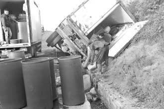 5日到8日,威青高速接连发生三起单车事故,均因司机疲劳驾驶导致。春困时节,切勿疲劳驾驶。图为5日凌晨,一货车撞断护栏翻入沟内。