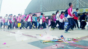 5月9日,在湖边举行的徒步大会启动仪式结束后,遗留下遍地垃圾。 (市民白先生提供)