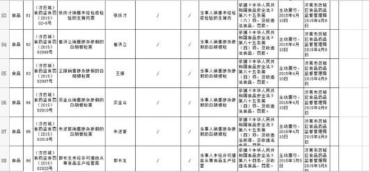 济南市食品药品监督管理局页面显示,公示最早的是市中区食药监局,4月28日;其次是章丘市食药监局,4月30日;长清区食药监局、高新区市场监管局5月5日公示。