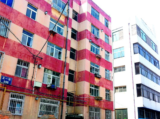 居民楼外的天然气管道成了小偷的“梯子”。本报记者 于飞 摄