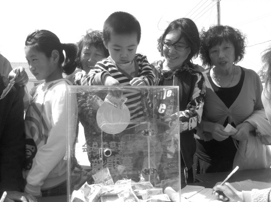 全村老少排队为基金捐款 小学生的零花钱也捐了