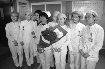 手捧鲜花,护士们集体合影。 本报记者 张晓科 摄