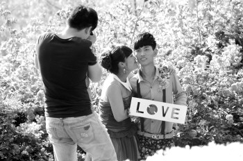 初夏的菏泽,天朗气清,处处花开蝶飞舞。12日,多对新人来到菏泽城赵王河畔拍摄婚纱照,定格爱的甜蜜瞬间。 本报记者 邓兴宇 摄影报道