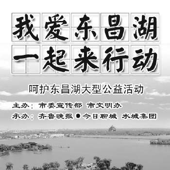 本报聊城5月12日讯(记者 刘云菲) 截止目前,本报联合市委宣传部、市文明办和水城集团发起的“我爱东昌湖,一起来行动!”大型公益活动已步入高潮。为了进一步保护东昌湖,发挥志愿队伍的监督作用,为市民搭建公益活动平台。本报联合市委宣传部、市文明办和水城集团将成立聊城首支保护东昌湖志愿服务队。