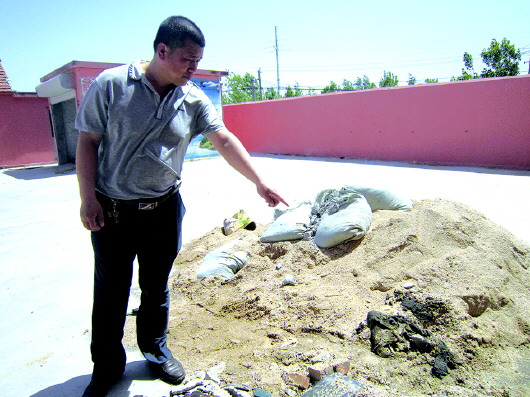 嫌疑人用沙子覆盖院内油迹,盗油现场很干净。