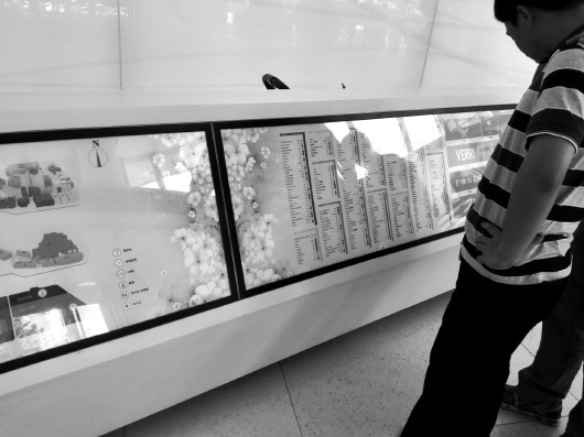 泉城路某商场,消费者正在导购台前,查找要去吃饭的餐厅。 本报记者 任磊磊 摄