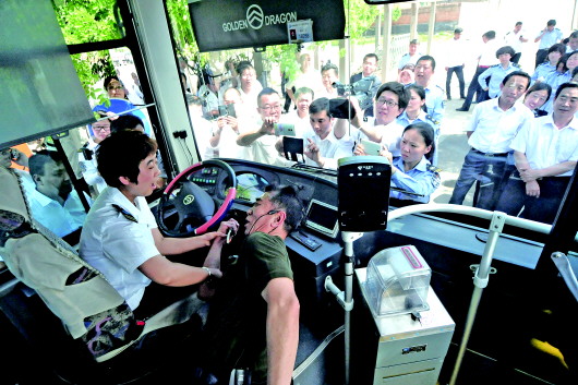 13日,在济南公交职工学校的培训现场,武警山东总队原副司令员李焕良扮作歹徒为公交驾驶员讲解夺刀术。当天,李焕良向司乘人员讲解了自卫术和利用身边工具物品应对突发事件的方法。
