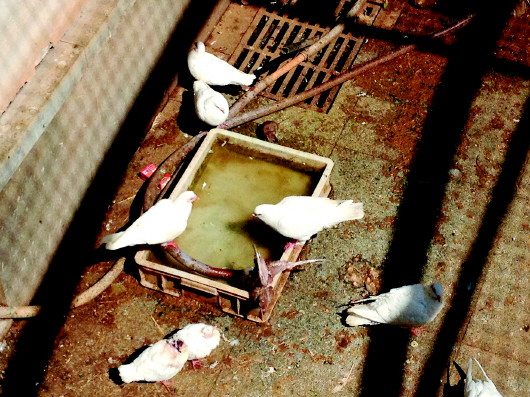 市民刘女士反映,周末带孩子去泉城广场上看鸽子,结果反而是鸽子房里一群老鼠吸引了大家的注意力。“鸽子房只有一个喝水的水盆,当时就有一群老鼠出来围着水盆,跟鸽子在一个水盆里喝水。周围的家长都在数有几只老鼠,还有拿出手机来拍照的。我也数了一下,大概有五六只吧。”刘女士说。