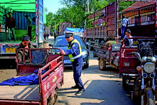 眼下正是蒜薹丰收时期,省内外的蒜薹收购商云集商河。自5月10日至5月16日,商河县公安局交警大队开展为期一周的专项行动,以每天连续工作17个小时的工作强度来维护蒜区路面交通秩序。
