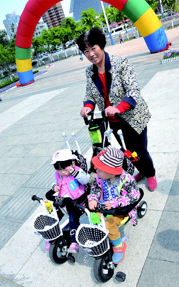 作品描述:一手掌控两台童车,齐头并进的两个小朋友也是很萌很萌的。
