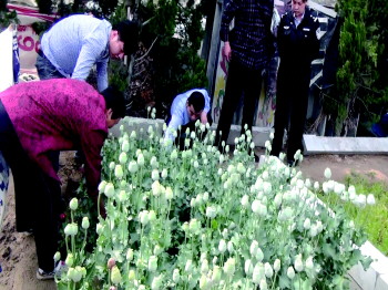 近期,德城区禁毒中队接到举报称北厂村东北街沿街疑似种植罂粟。原来是村里的刘某出于好奇,花一元钱买了罂粟种子种在门前。经核查,共铲除罂粟95株。 本报记者 孙婷婷 通讯员 骆守明 摄影报道