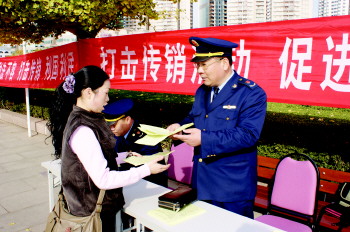 13日,市南区市场监管局执法人员设置现场咨询点,向居民宣传《禁止传销条例》和《直销管理条例》的法律法规和防范知识,通过宣传传销的严重危害和防范手段,以提醒群众避免误入传销陷阱。