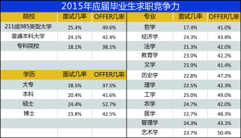 需要注意的是,名校毕业、专业和专业成绩对于毕业生成功获得offer的作用并不明显。这一现象与企业选拔应届毕业生时的标准有关。企业在选拔人才时更加关注学生是否有与岗位相关的工作经验,以及全面考察毕业生的综合素质,而不再将成绩、专业以及学校等级作为选择人才的硬性规定。