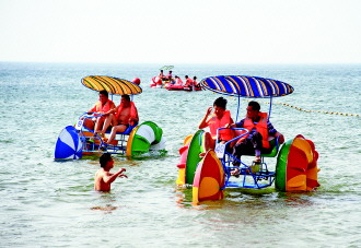 13日,高区国际海水浴场,已经有人下海戏水,当日,威海迎来入夏以来最高温29℃。