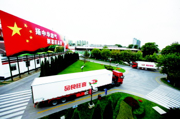 记者在喜旺工厂内看到,井然有序的厂区,整洁的园区道路两旁修剪齐整的冬青、松树和长绿灌木,一片生机盎然。园区正对大门一面巨大的五星红旗墙,墙上“扬中华志气 树喜旺品格”几个大字格外引人注目。