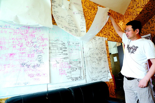 在姜斌的公司,墙上挂的图纸都是团队头脑风暴后留下的草稿。