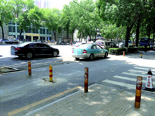 记者在现场发现,这条东西向的路大约有五百米长,六米多宽。每隔一段距离,路面上安装了隔离桩,仅供行人和非机动车进入。“机动车不能进入这条路,而且门口就是公交车道,唯一能停车的地方就是我们单位的门口。”张先生称,“我们单位的职责之一是负责国防光缆地下线路的抢修,万一发生紧急事故,我们的通讯抢修车出不去怎么办?”