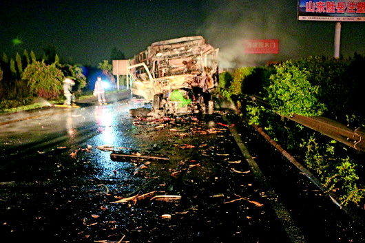 5月16日0时23分,山东省高速交警总队一支队张店大队接到报警称,辖区青银高速西向东方向246公里处一辆大货车“自燃”,怀疑有人伤亡。