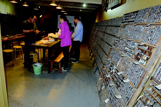 “时光印记”室内的铅字墙成了一道风景线。 本报记者 郭建政 摄